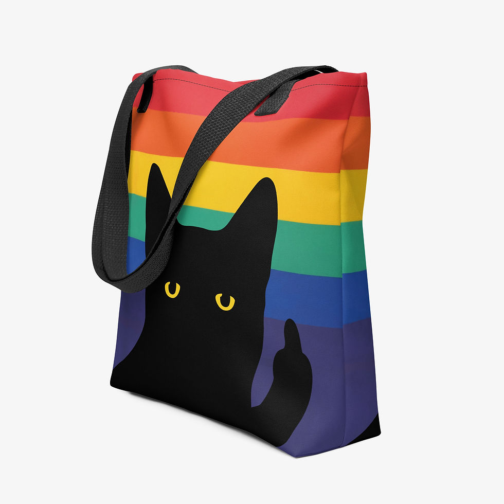 Middle Finger Cat in Rainbow Colors | AOP Tote Bag